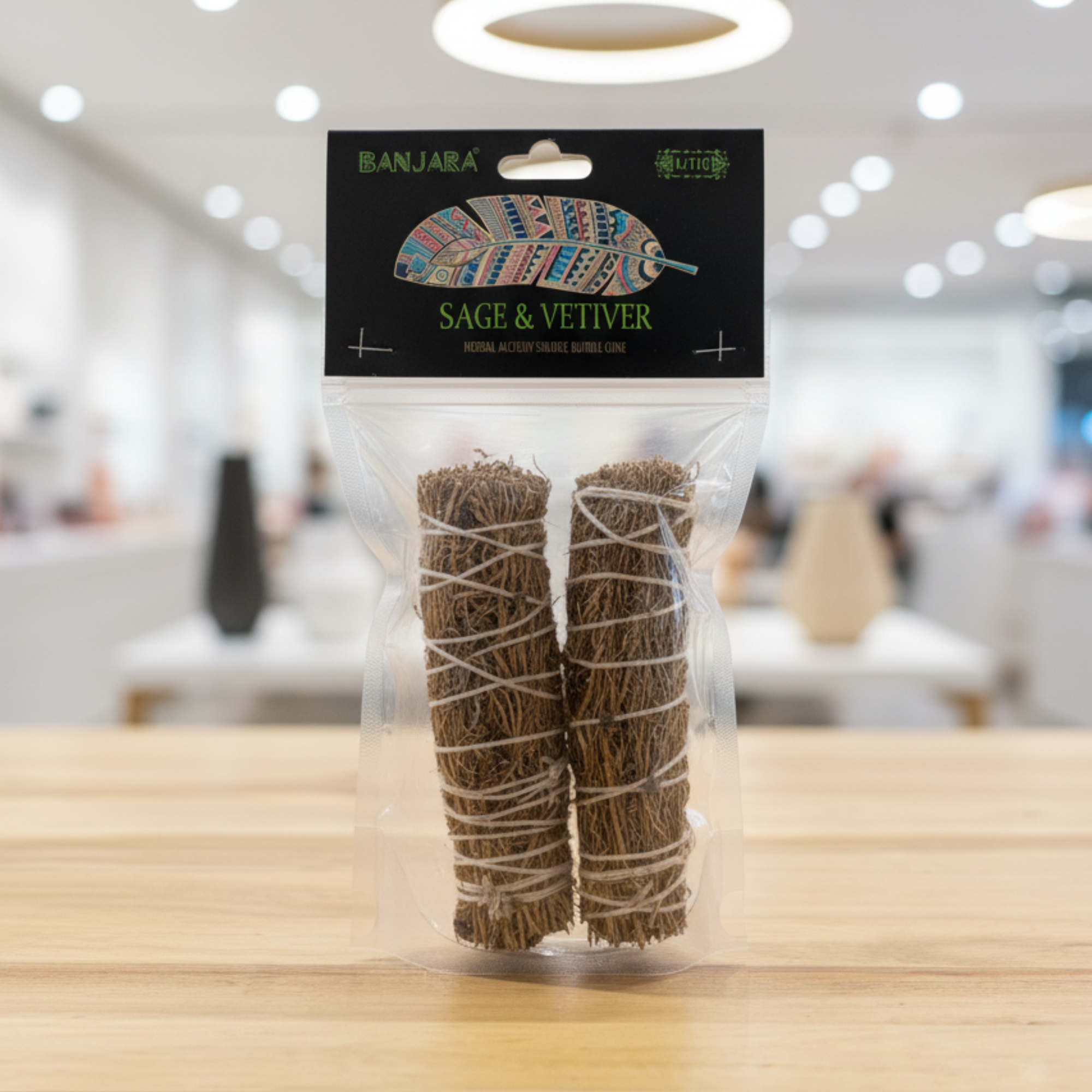Entdecke eine stille Form der Stärke mit den Banjara Räucher-Bündeln – Salbei & Vetiver, einer handgerollten Kombination, die erdet, reinigt und Balance zurückbringt. Himalaya-Salbei, verehrt für seine reinigenden und schützenden Eigenschaften, verschmilzt harmonisch mit der erdigen Tiefe des Vetivers, bekannt als das „Öl der Gelassenheit“. Gemeinsam erzeugen sie einen Rauch, der Negativität vertreibt und zugleich Ruhe, Stabilität und Fokus schenkt.