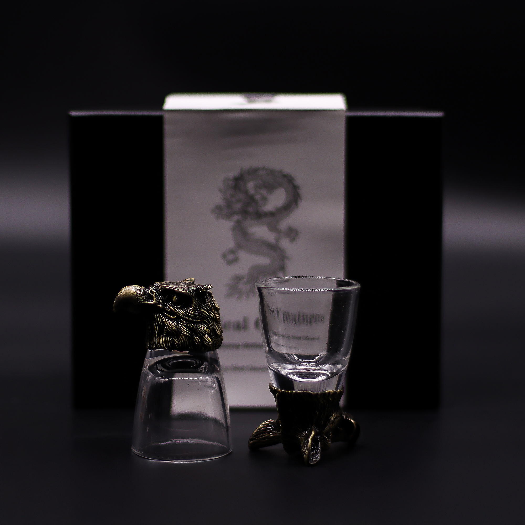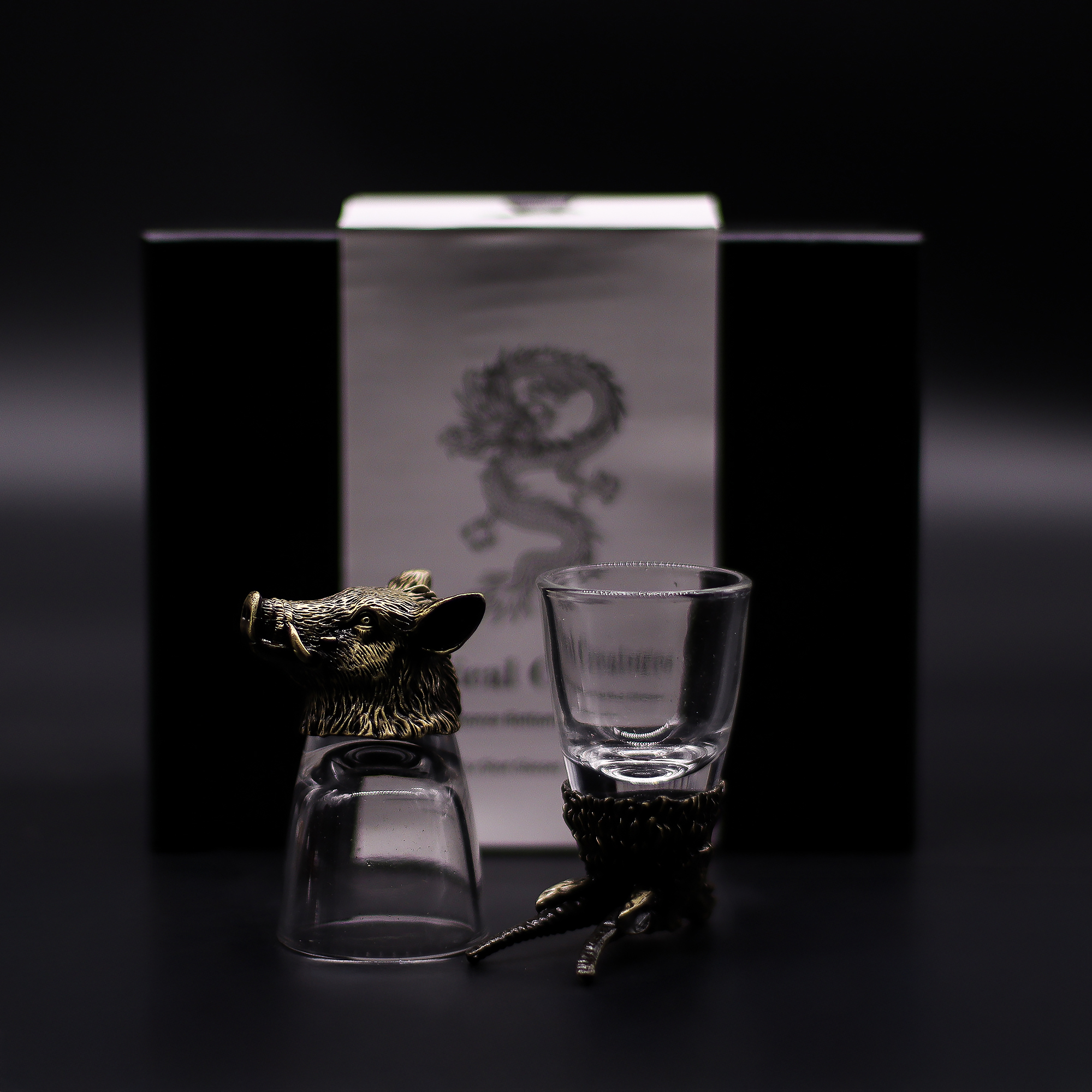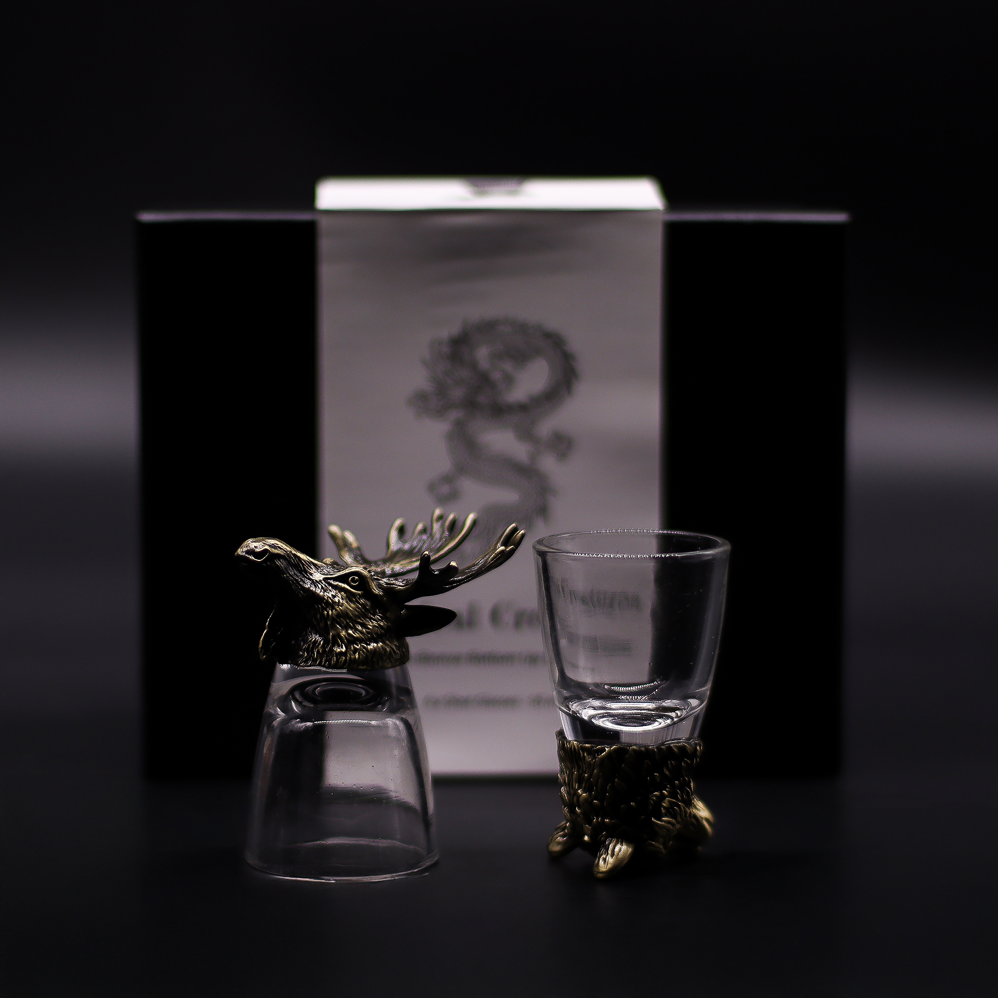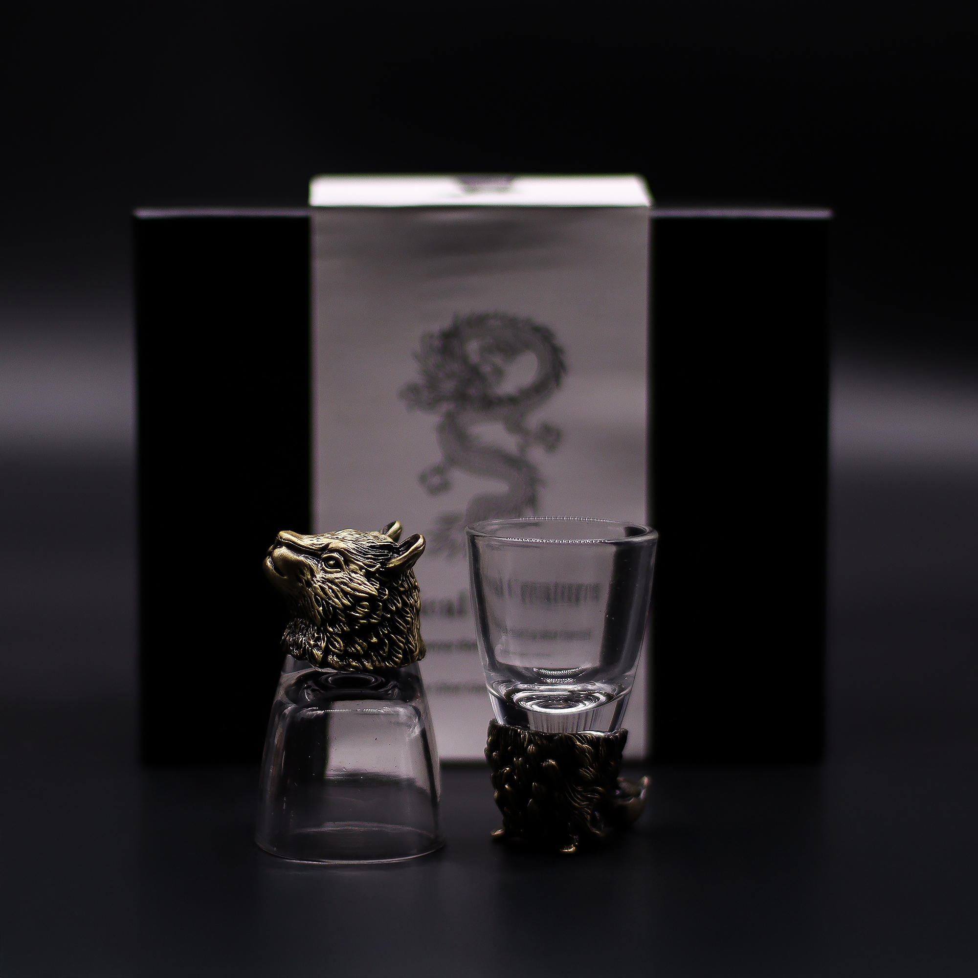 Verleihen Sie Ihren Aperitifs einen Hauch von Magie und Natur mit diesem Set aus sechs 50-ml-Schnapsgläsern, inspiriert von legendären Waldtieren. Jedes Glas besticht durch sein einzigartiges Design in Antikbronze, das rustikale Eleganz mit handwerklicher Originalität verbindet. Ideal für Sammler, Bars,