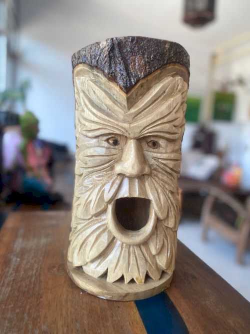 Die auf Bali handgefertigten Vogelhäuser aus Baumstamm – Greenman sind einzigartige Kunsthandwerksstücke, direkt aus natürlichem Holz geschnitzt. Ihr rustikales Design mit Gesichtern, die vom Geist der Natur inspiriert sind, macht sie zu einem eindrucksvollen Dekorelement für Gärten, Terrassen und jeden Außenbereich, der einen Hauch von Magie und Wildheit wünscht.