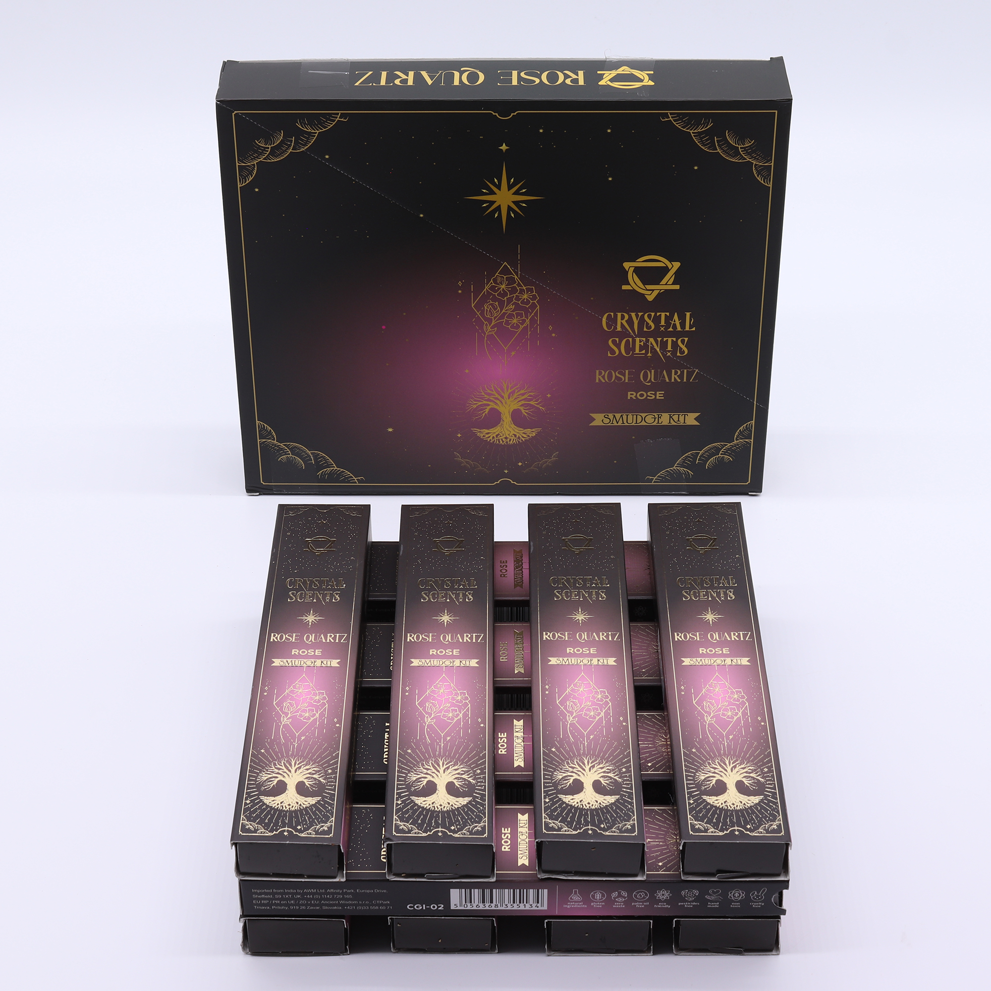 Jede Packung enthält 10 handgefertigte Smudge-Sticks und einen echten Rosenquarz-Kristall – ein Produkt mit hoher Geschenkattraktivität und breiter Zielgruppenansprache, besonders im Bereich Wellness, Achtsamkeit und Self-Care. Ideal für Themenwelten rund um emotionale Balance, Entspannung und liebevolle Rituale.