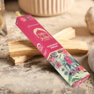 Die Tales of India Räucherstäbchen werden in kunstvoll gestalteten Verpackungen präsentiert, die das künstlerische Erbe Indiens widerspiegeln. Jede Packung ist mit filigranen Mustern und lebendigen Farben verziert, die an traditionelle indische Kunst erinnern – ein visuelles wie auch aromatisches Highlight. Die Verpackung ist sowohl robust als auch elegant und schützt die Stäbchen zuverlässig, während sie sich hervorragend für den Einzelhandel oder die persönliche Sammlung eignet.