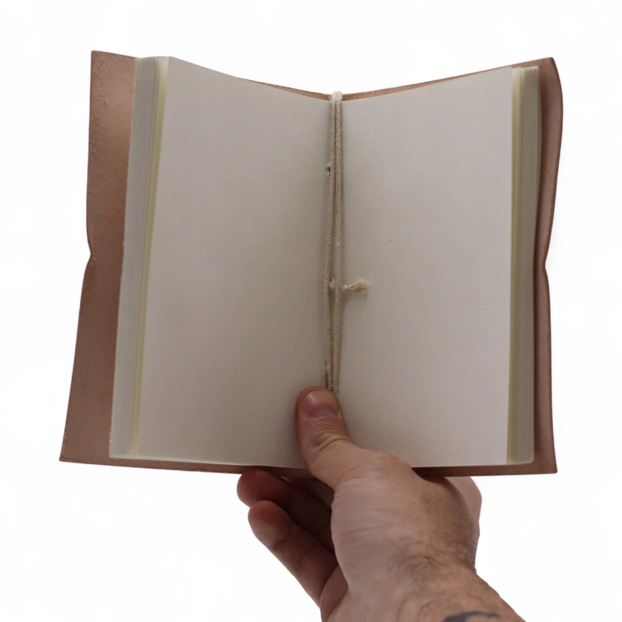 Jedes Notizbuch misst 15,2 × 11,4 cm und ist wunderschön handgefertigt aus echtem Leder. Es besticht durch eine taktile, zeitlose Ausstrahlung, die an die Mystik alter Zauberbücher erinnert.