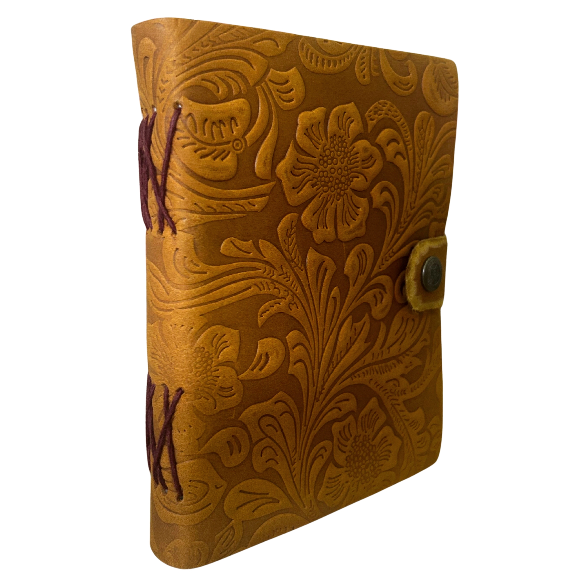 Erlebe Eleganz, Handwerkskunst und zeitloses Design mit unserem geprägten Leder-Notizbuch – Tan Floral Pattern, einem edlen Stück für alle, die Schönheit in jedem Detail zu schätzen wissen.