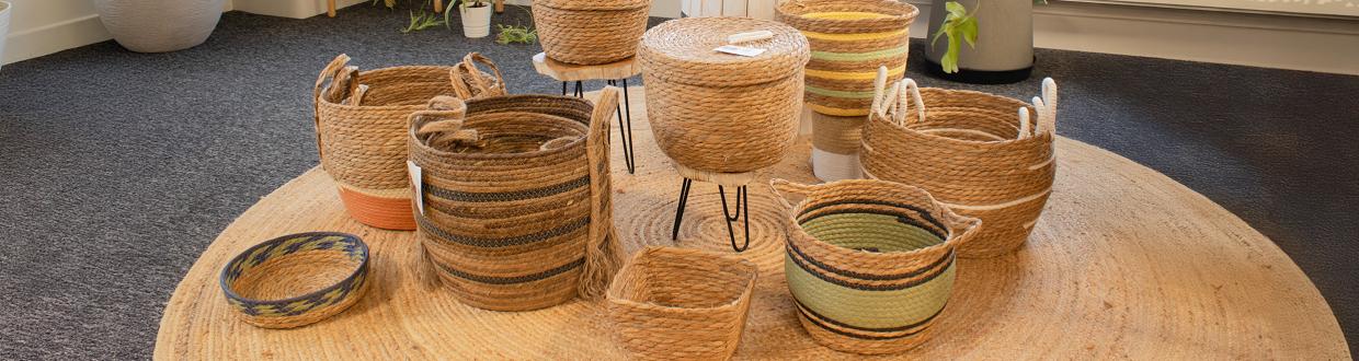 Körbe sind vielseitig, sie sind ideal für die Präsentation Ihrer Produkte, sie können eine stilvolle Aufbewahrungslösung sein, ihr Design ist für jedes Zuhause, Büro oder sogar ein Yoga-Studio geeignet. Sie werden in Indonesien aus Bananenfasern und Bast handgewebt. Jeder Korb durchläuft einen detaillierten Prozess, vom Anbau bis zur Ernte. Naturprodukte sind sehr gefragt. Diese wunderschönen Korbsets vereinen das Beste aus zwei Welten: natürlich und künstlich; erdig, elegant und praktisch. Durch den Kauf eines dieser Körbe unterstützen Sie seine Hersteller und helfen, die alte Handwerkstradition in Java zu bewahren.
