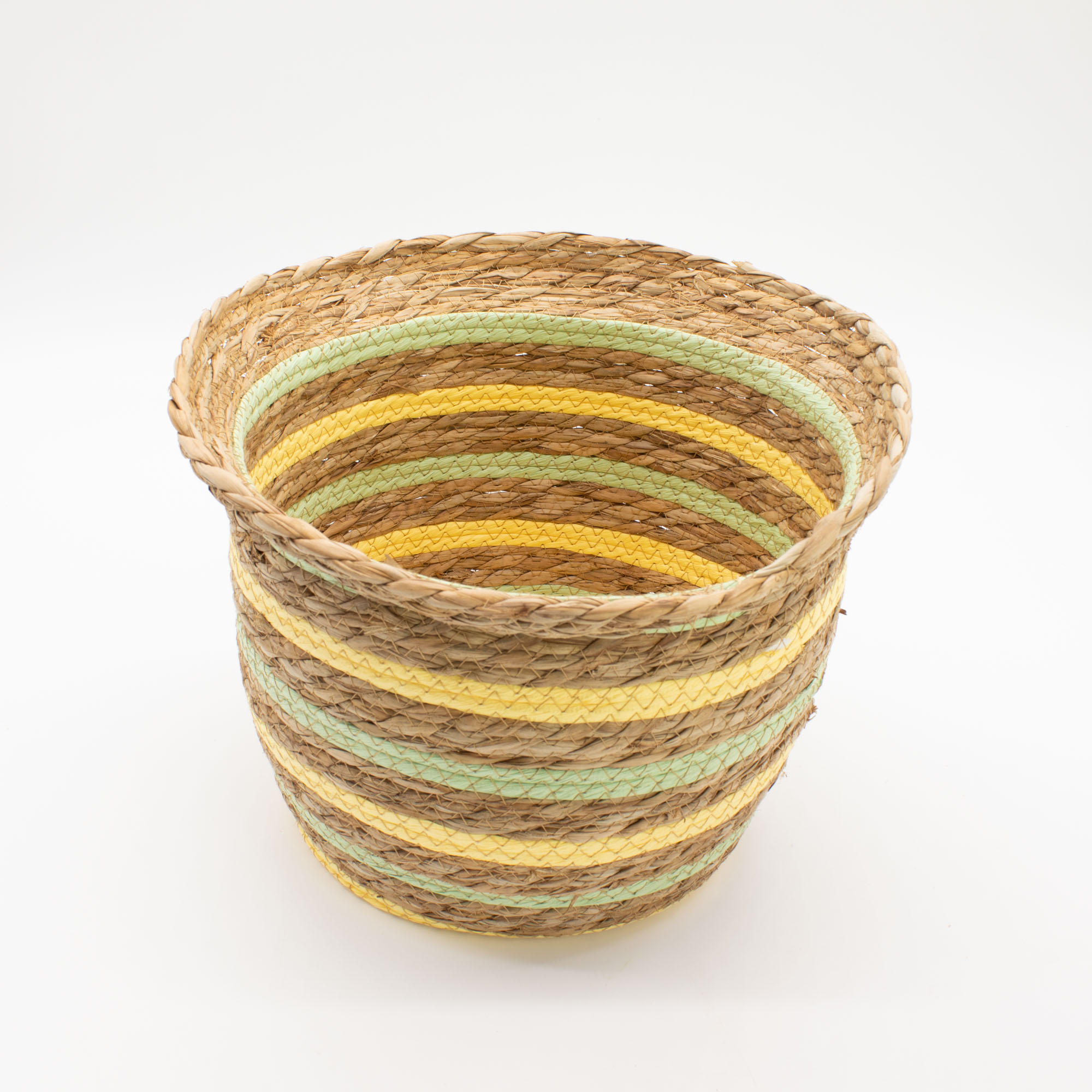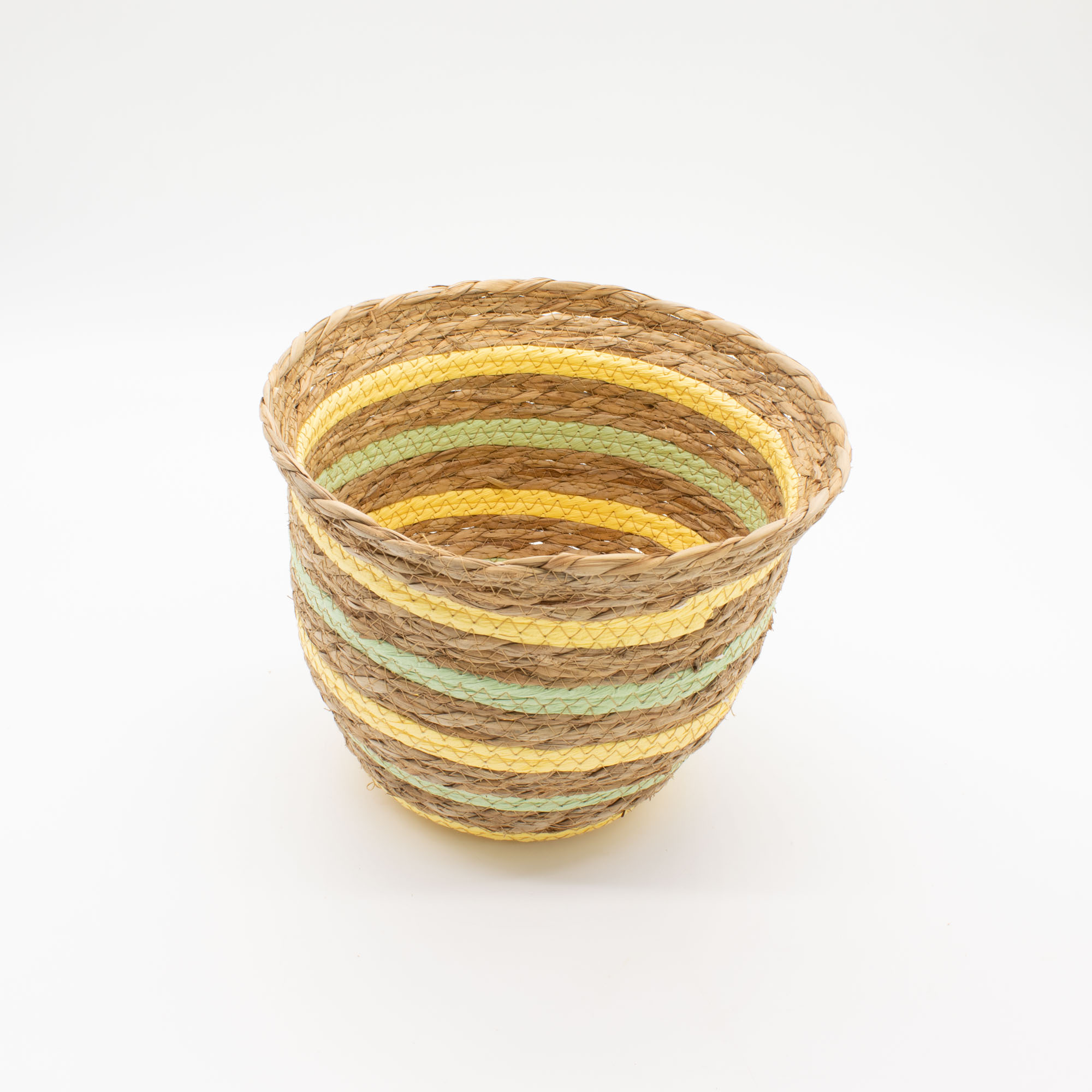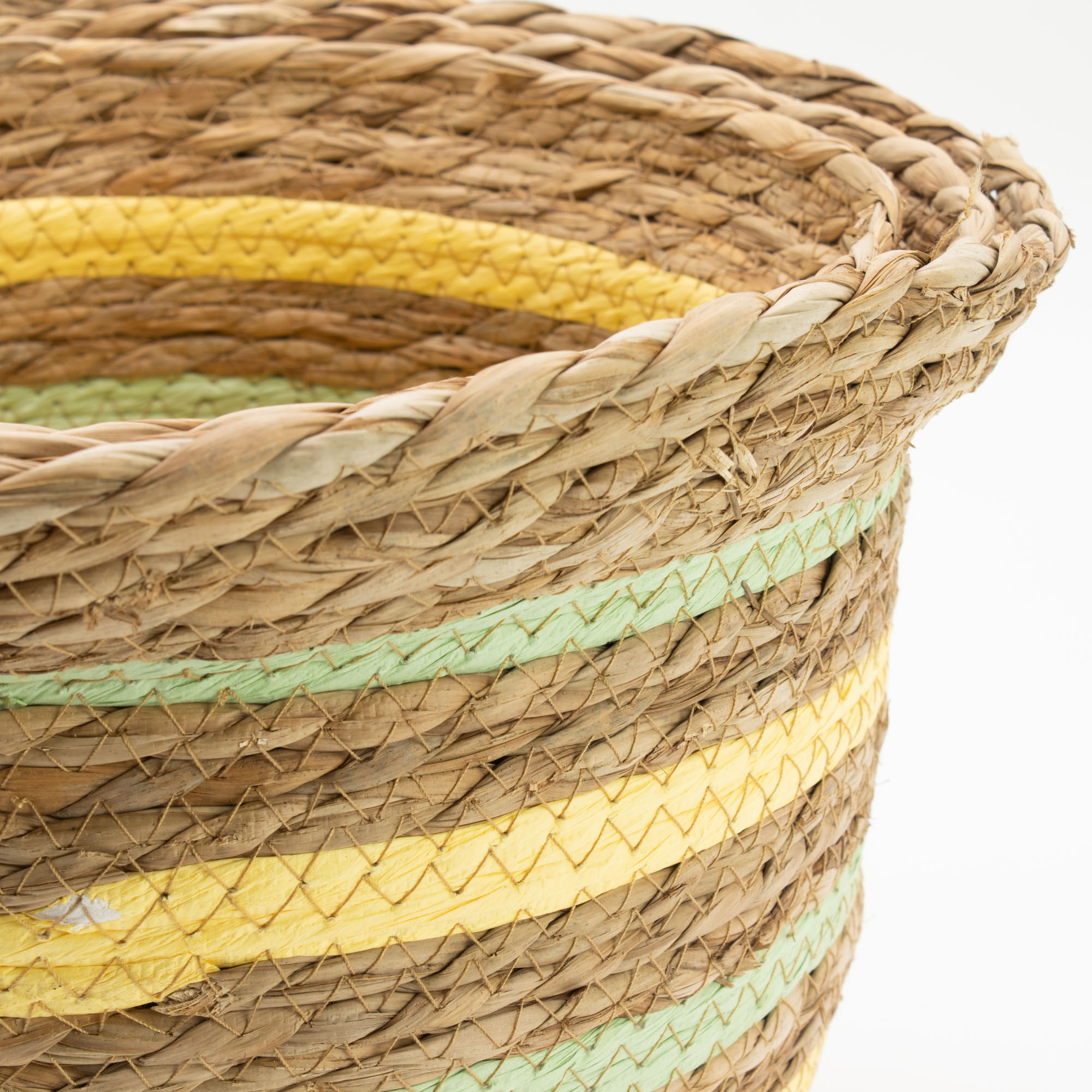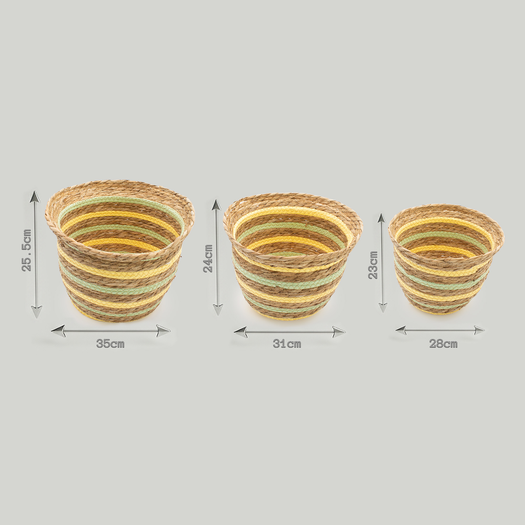 Körbe aus Seegras & Stroh in Vasenform – Natural Yellow & Green werden aus fest verflochtenen Seegras- und Strohfasern in traditioneller Spiraltechnik hergestellt, wodurch eine stabile, aber dennoch leichte Struktur entsteht. Die sanft gerundete, vasenförmige Silhouette wird durch dezente gelbe und grüne Streifendetails ergänzt, die den Körben einen warmen, natürlichen Charakter verleihen und sie gleichzeitig vielseitig für die Aufbewahrung machen. Sie eignen sich hervorragend zum Aufbewahren von Textilien, Blumentöpfen, Accessoires oder alltäglichen Haushaltsgegenständen.