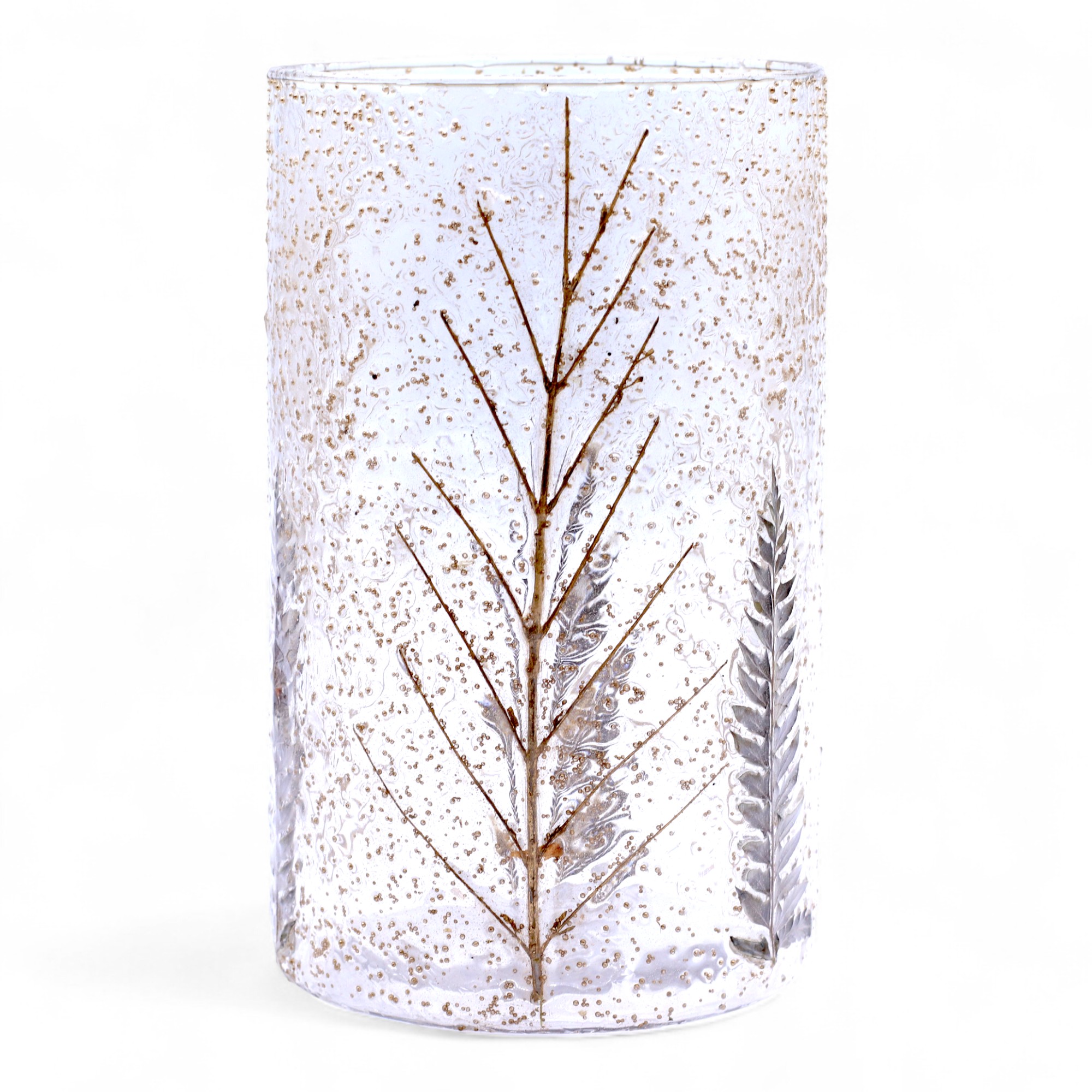 Bringe die Ruhe des Waldes in dein Zuhause mit dem Natürlichen Floralen Kerzenhalter aus Glas in hoher Vasenform – Design Pine Tree.