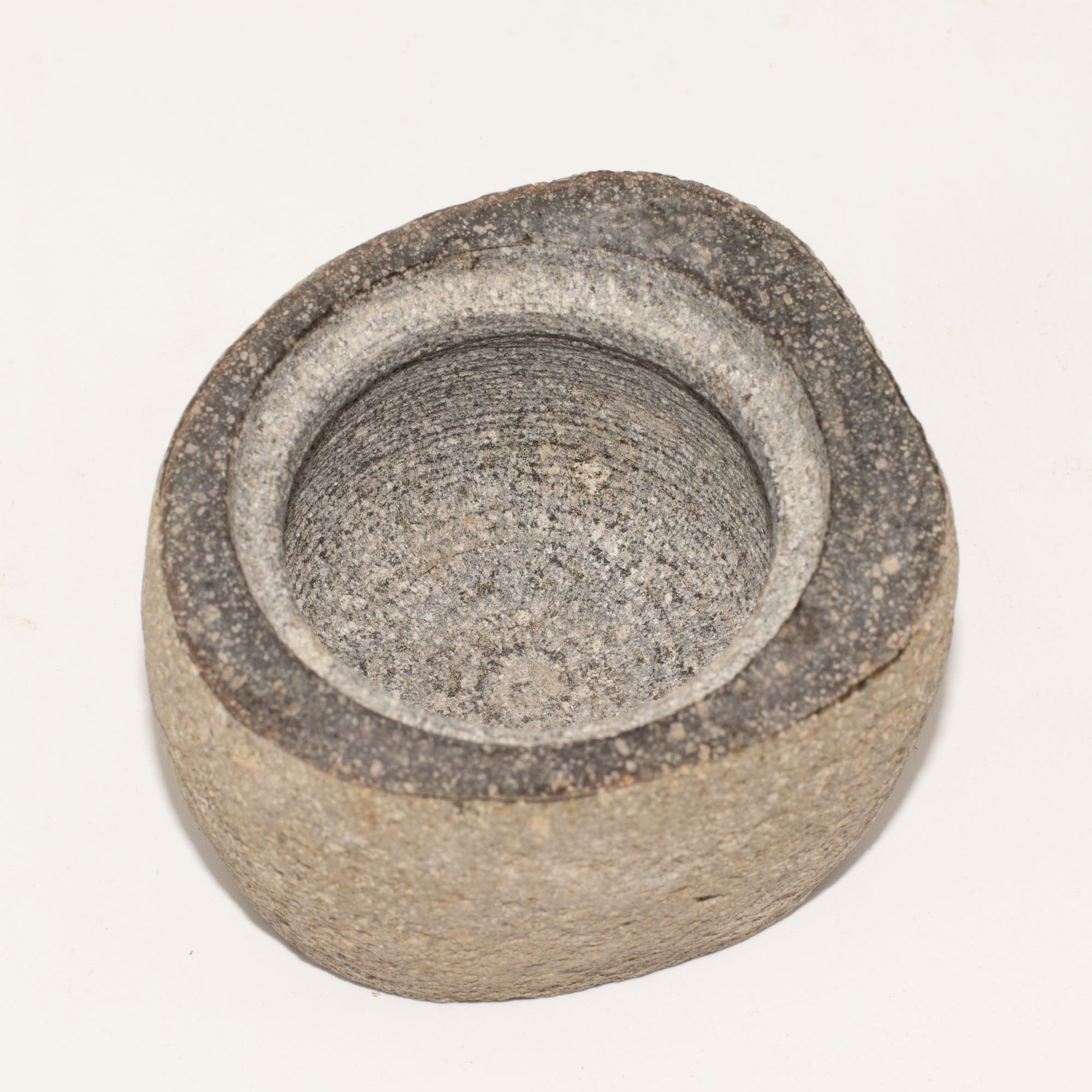 Dieser kleine Erdungs-Topf ist aus massivem Flussstein gefertigt und bewahrt das natürliche Gewicht, die Textur und die organische Form des Steins. Innen glatt und außen roh, liegt er angenehm in der Hand und wirkt dezent erdend auf jeder Oberfläche.