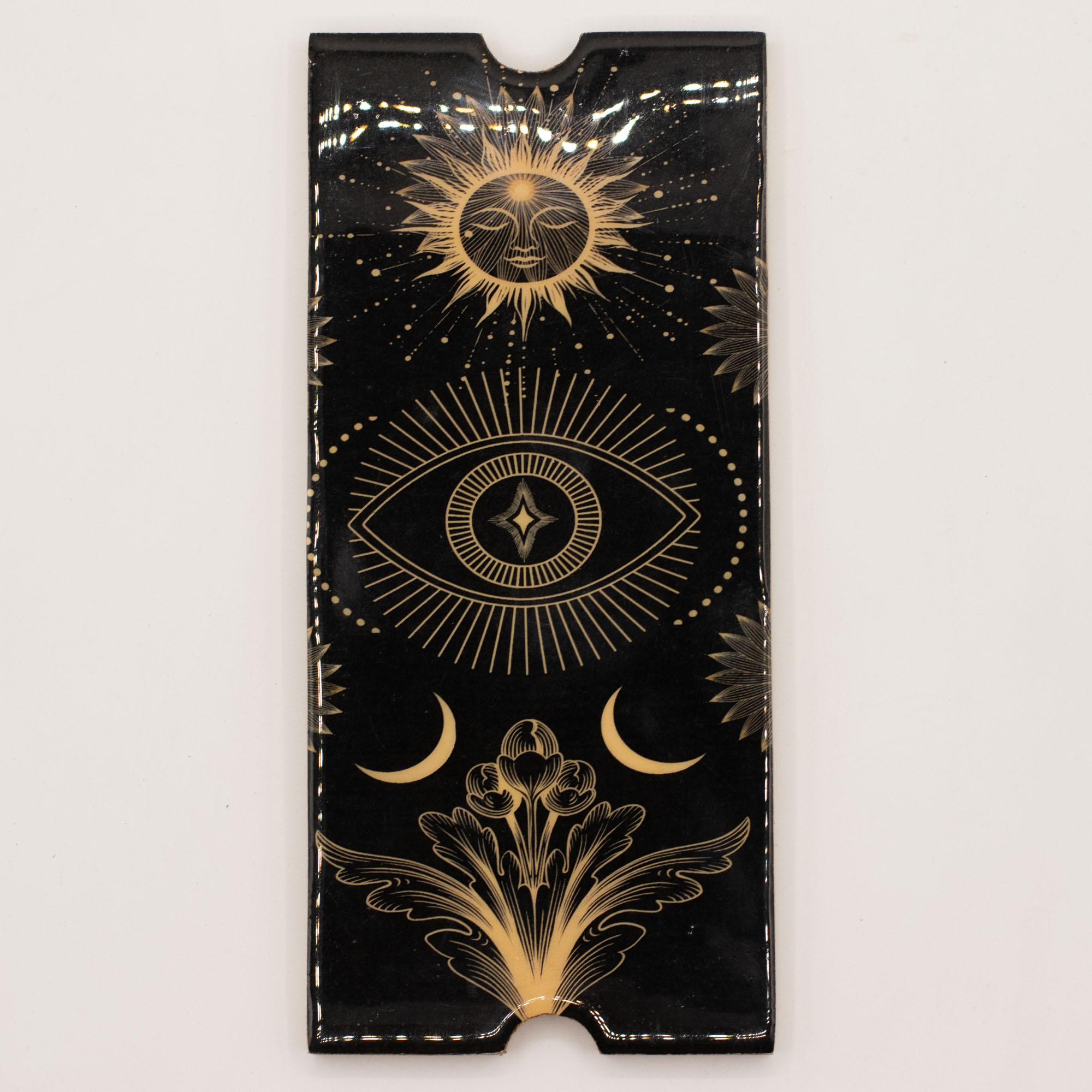 Das dunkel gravierte Paneel sorgt für Kontrast und Tiefe und verleiht dieser Version ein dramatisches, markantes Erscheinungsbild. Eine überzeugende Option für Einzelhändler:innen, die ein hochwertiges Tarot-Accessoire mit optischer Ausstrahlung und praktischer Alltagstauglichkeit anbieten möchten.