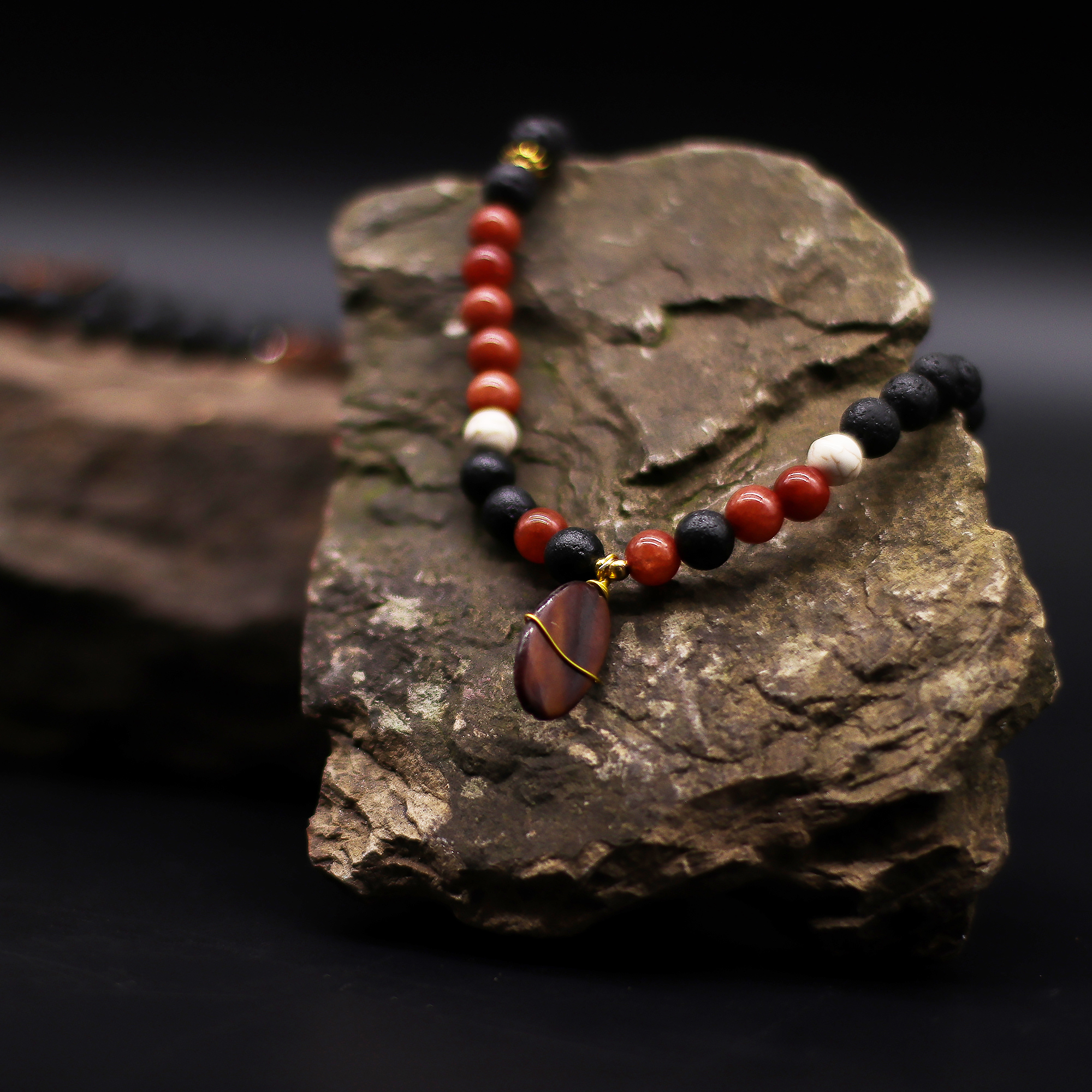 | Materialien / Zutaten | Volcanic beads, gemstone beads |